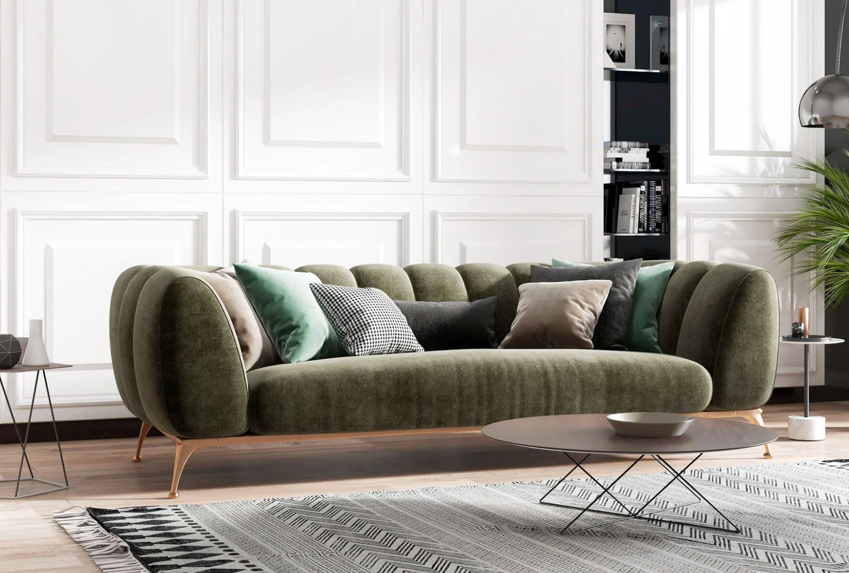 Accentuate your living space with a modern, casual sofa with plush cushions and an oversized profile.